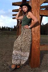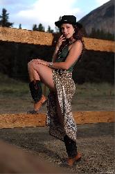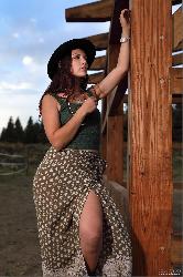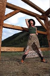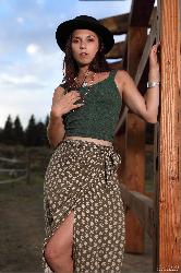 Adorable babe Elena Generi excitedly shows off her sexy shapely legs and small natural breasts while posing at the western ranch in MPL Studios set Postcard Crested Butte