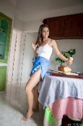 Adorable brunette Nina Sphinx teasingly removes her white top and skirt revealing her extra juicy breasts and delicious hairless punani on the table in Metart set Flashback