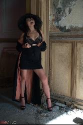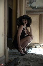 Alluring dark-haired goth hottie flashing her cooch in an abandoned building in Girlfolio set Black Widow