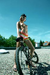 Athletic goddess riding a bike in heels and topless in Met Art set Visage By Magoo