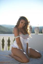 Bimbo brunette showing off her big tits on her balcony in Hayleys Secrets set Rebecca Terrace Bed