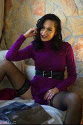 Black stockings adding spice to stunner's sizzling figure in Girlfolio set Colour Purple