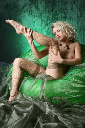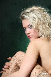Blonde bombshell Valentina A hopping into beige fishnets in Met Art set Rebelde