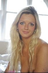 Blue-eyed bombshell demonstrating her nude body and pretty face in Breathtakers set All White