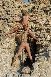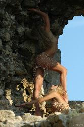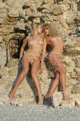 Bombastic blonde duo posing naked on the beach together in Met Art set Aevals