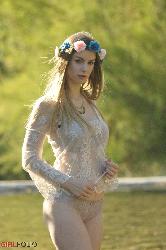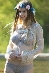 Bombastic brunette hippie chick playing naked in the river in Girlfolio set Back To Nature