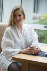 Bootylicious brunette stripping naked on the dinner table in Girlfolio set Morning Tease