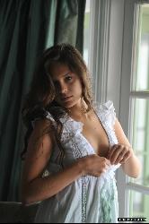 Busty brunette cutie walking on her balcony naked in Girlfolio set Nina 003