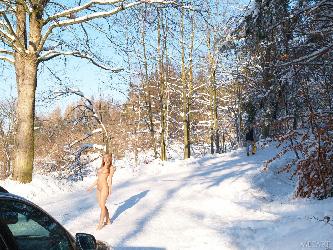 Capturing the pure beauty of naked Tania G in the snow in Met Art set Michaela
