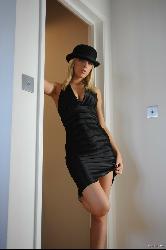 Cheeky blonde honey posing in alluring black lingerie in Breathtakers set Bowl Hat
