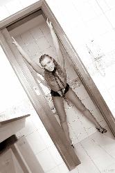 Classy blonde Sandra C posing in an alluring corset and heels in Met Art set Chroma