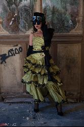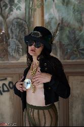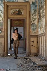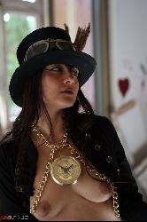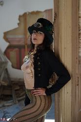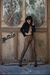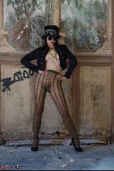 Classy brunette hottie strolling through the castle in pantyhose in Girlfolio set Steamy Punk