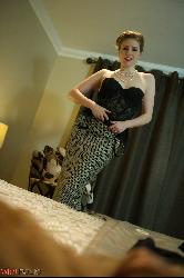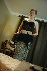 Classy brunette lady reveals her delicious lingerie under her dress in Girlfolio set Bedroom Burleaque