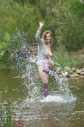 Curvaceous brunette splashing her bare tits in the water in Breathtakers set Splash