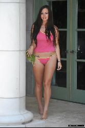 Curvaceous dark-haired diva relaxing naked in the backyard in Breathtakers set Tessa Flower
