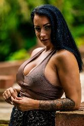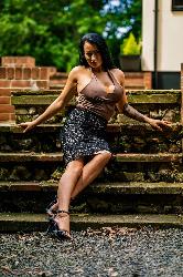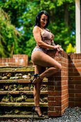 Curvaceous dark-haired seductress stripping naked out of her dress outdoors in Hayleys Secrets set Steppin Out