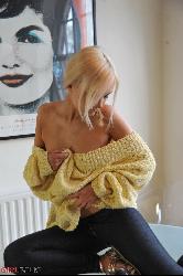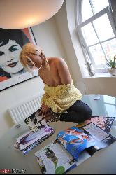 Cute blonde fashionista chick stripping on the table in Girlfolio set Faye Browsing