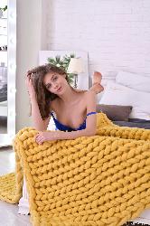 Cute brunette Olivia Lust removes her blue matching lingerie and excitedly shows off her flawless nubile body and tight pinkish snatch on the bed in Metart set Presenting Olivia Lust