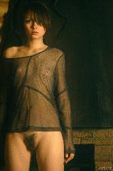 Cute brunette teen stunner hiding her body behind sheer shirt in Met Art set Persea