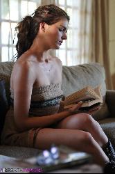 Cute but naughty Lucy Blackburn poses on a bed as she passionately divests for the camera objective in Breathtakers set Lucy Alone