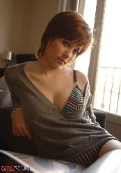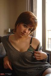 Cute short-haired brunette Sofia dropping her dress on the floor in Girlfolio set New Model Test
