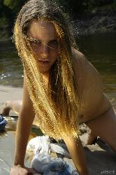 Dainty blonde stripping to swim naked in the lake in Met Art set Mistica