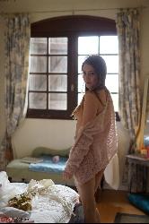 Dainty brunette Scarlot Rose admiring her petite figure in the mirror in Girlfolio set What Shall I Wear For You