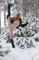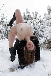 Daring babe with the dashing figure is not cold outside as she gets nude out in the snow in Zishy set Snow Is Quiet