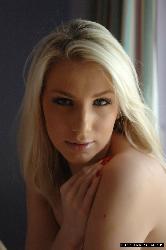 Delicious blonde Danielle showing her figure in the window in Breathtakers set Close Up
