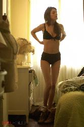 Delicious brunette Claudia changing her panties in front of the window in Girlfolio set Street Scene