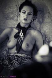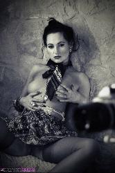 Delicious brunette posing in her favorite tie topless in Breathtakers set Retro Porn