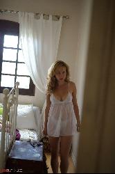 Delicious curly-haired blonde sweetie looking cute in white sheer nightgown in Girlfolio set A Weekend With Lena #1