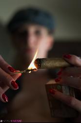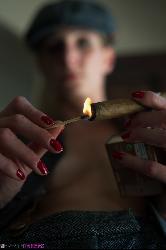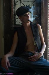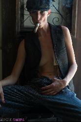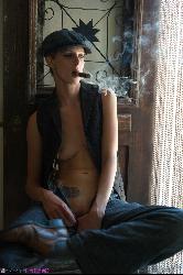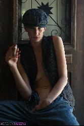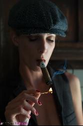 Edgy goddess smoking a cigar while dipping her fingers deep inside in Breathtakers set The Peaky Blinder