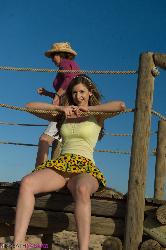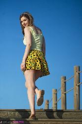 Enchanting brunette model exposes her carefully shaved pinkish muff and natural saggy breasts with stiff nipples outdoors in Breathtakers set Beach Bum