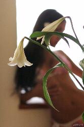 Exotic island goddess Lissa A wears only a flower in hair in Met Art set Serenia