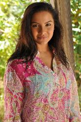 Exotic nymphet pouting her puffy lips while taking her clothes off in Hayleys Secrets set Lacey Blue Bikini
