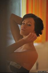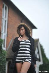 Foxy stunner Danielle Maye releasing her boobs from a striped dress in Girlfolio set Tess 004