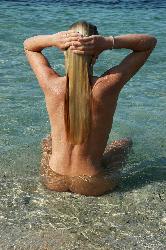 Golden locks of a fit siren getting wet in the ocean in Met Art set Dafne: Sunray