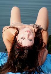 Gorgeous brunette chick sunbathing naked by the water in Met Art set Bonjour