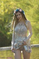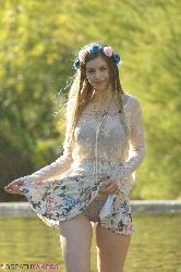 Gorgeous brunette hippie Stella Cox dancing naked in the woods in Breathtakers set Back To Nature