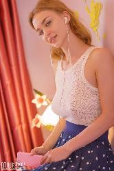 Gorgeous redhead enticingly undresses revealing big and natural jiggly breasts and perfect butt in Amour Angels set Hottest Day