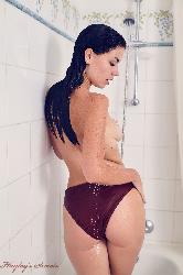 Inked hands of Aemelia Fox placed between her lovely legs in Hayleys Secrets set Tub Fun