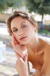 Jaw dropping beauty Clarice looks dazzling as she exhibits her fantastic curvy body and sweet shaved pussy on the table outdoors in Metart set Blazing Blues