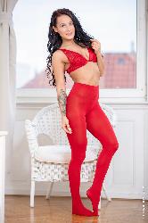 Lexi Dona ecstatically showcasing her fit figure with hairless coochie as she removes her red pantyhose in a seductive manner in Ultra Films set Hotter Than Wildfire