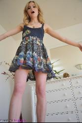 Light dress uncovers Kelly Klass’s white panties and shaved beaver in Breathtakers set Hippy Part 1