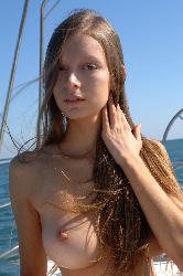 Magnificent Adelia attractively poses on the yacht as she flashes her breasts and spreads her legs in Femjoy set Fresh Breeze