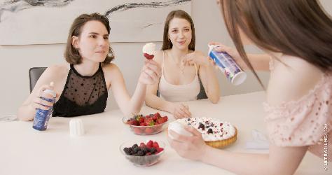 Passionate chicks indulge in a sapphic adventure full of pussy eating after getting nude on a couch in Ultra Films set Cock Free Party