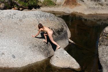 Petite Asian stunner displaying her bushy pussy while hiking in Met Art set Levante