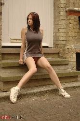 Petite redhead darling flashing her panties under short dress in Girlfolio set In A Mini Dress In A Mini