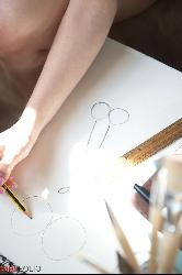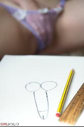Playful blonde Stella Cox teasing herself on the sofa in Girlfolio set Sketch
